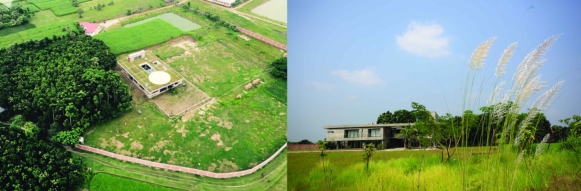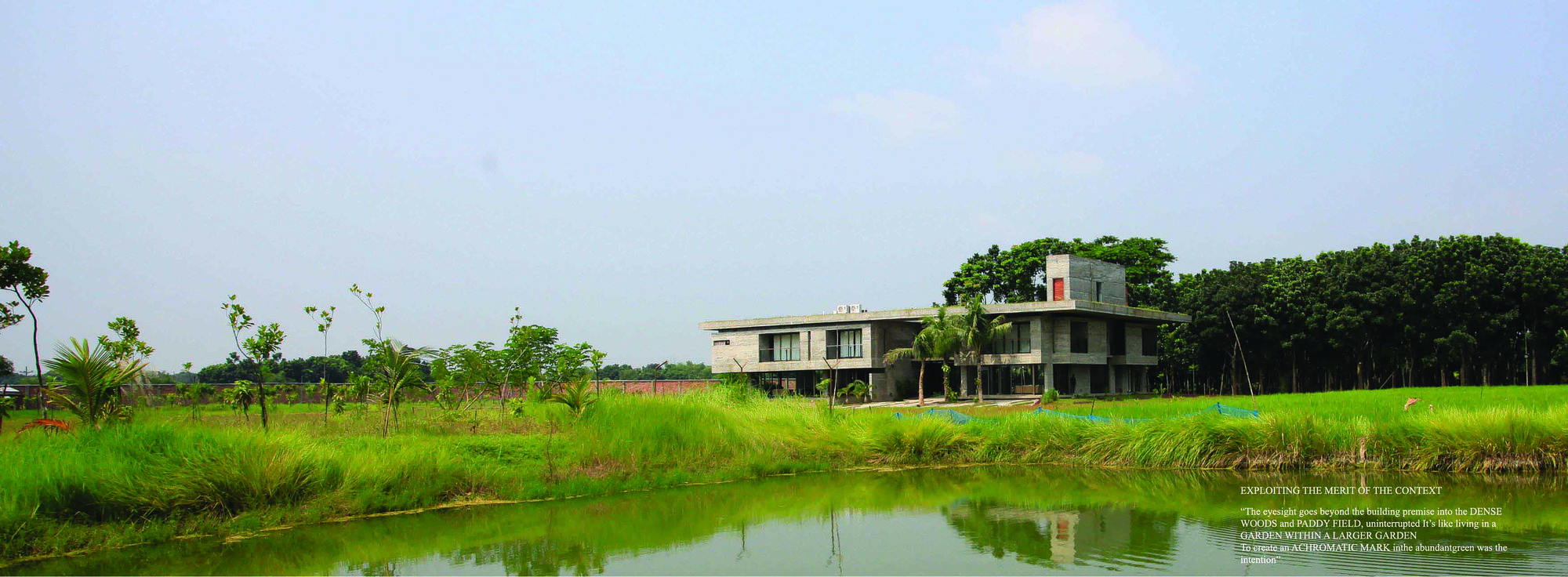 This very project intended to be the place to house the family in greater sense, amidst the vast landscape of the Jute Mill (client-owned) premise. THREE GENERATIONS OF AN EXTENDED FAMILY were to be housed here, to be together and to make this building a home truly. The 5 brothers, one of whom is the client, would come here with their families and the parents, and friends sometimes. It was a challenge to make it a place TO CREATE MEMORIES for all these people who would come here to get rid of urban life’s hustle and bustle in a very remote and serene setting.
