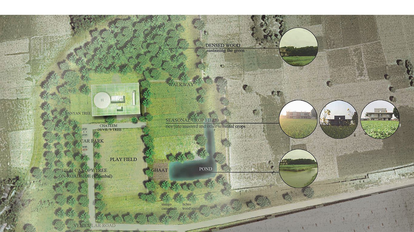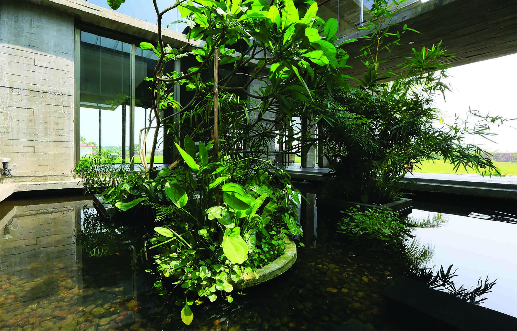 LIGHT is the most vital element used in here that acts as a building material to reveal all the other materials in their true nature. The building is totally RESPONSIVE TOWARDS THE SEASONS of Bangladesh. As the season changes the tropical garden changes the mood and its color and the garden pavilion house shines within it. Even the selection of the herbs, shrubs and trees i.e. overall vegetation, are guided to act as per nature’s change. Thus, GREEN has also been used as an important building material to accentuate the nature and living condition.