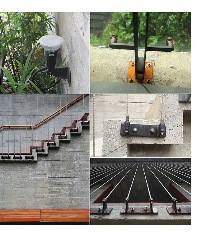 LOCAL BUILDING TECHNIQUES are the key to the construction of this building. Also, only LOCAL MASONS were appointed to complete the job. They had been trained by the architects and engineers to support the whole construction. KNOWLEDGE SHARING with the masons helped to take proper decision and adopt the appropriate construction techniques. Some decisions were made through several TRIALS AND ERRORS like string/cable railing of the stair, offset cut switch boxes in concrete walls etc.