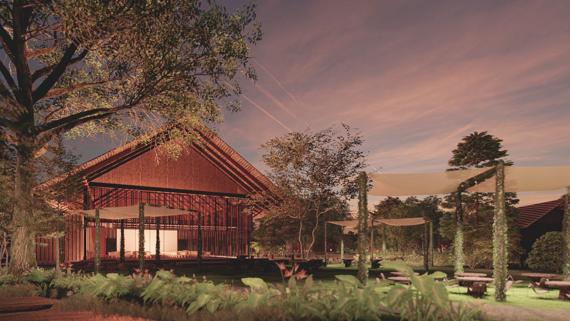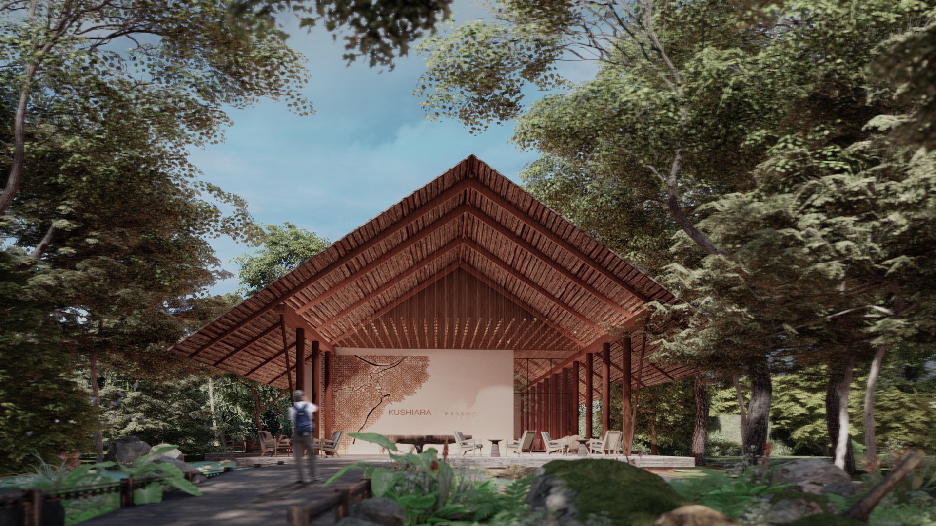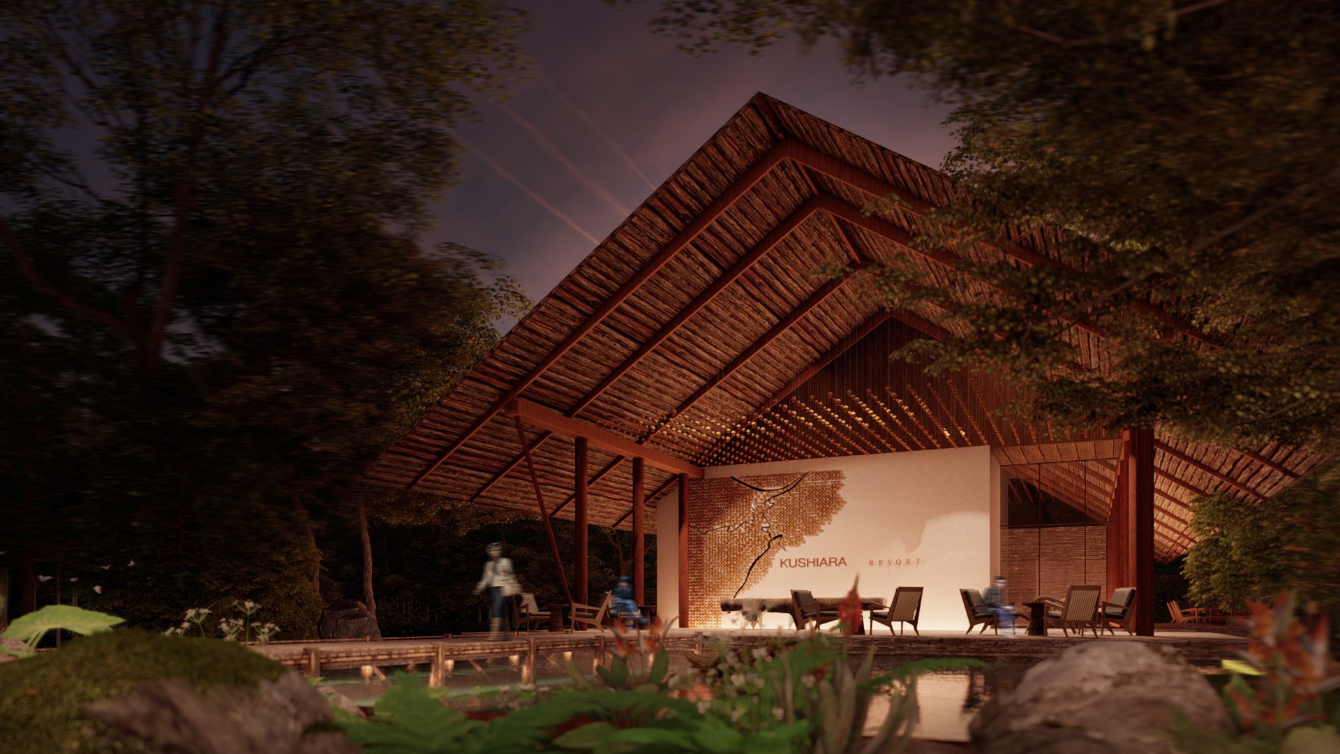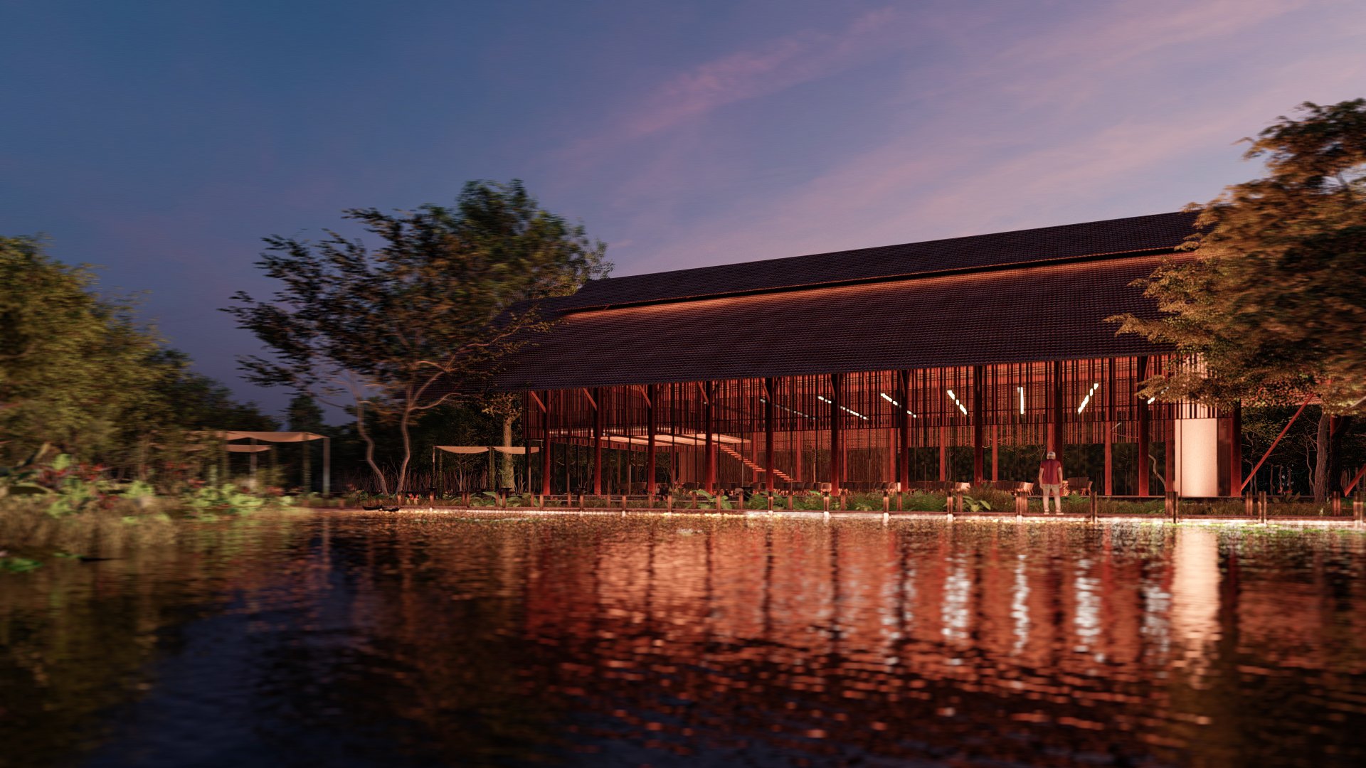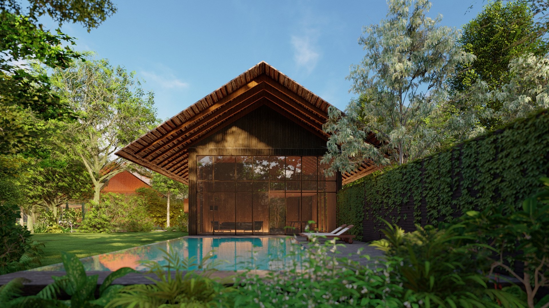 The resort is designed to blend seamlessly with the natural landscape of Sylhet, creating a tranquil retreat centered around water and greenery. At the entrance, the reception pavilion sits adjacent to a serene water body, featuring an open, nature-embracing structure with warm materials and a calm walkway that guides guests into the property. Nearby, the multipurpose hall overlooks the lake and offers both indoor and outdoor spaces for gatherings, framed by wooden architecture and shaded seating areas woven into the landscape. Deeper into the site, clusters of cottages are arranged around the natural lake, each positioned to maintain privacy while preserving the sense of a peaceful, lakeside community. The resort includes a variety of recreational zones – restaurant, swimming pool, dedicated play zones, gymnasium and many more.