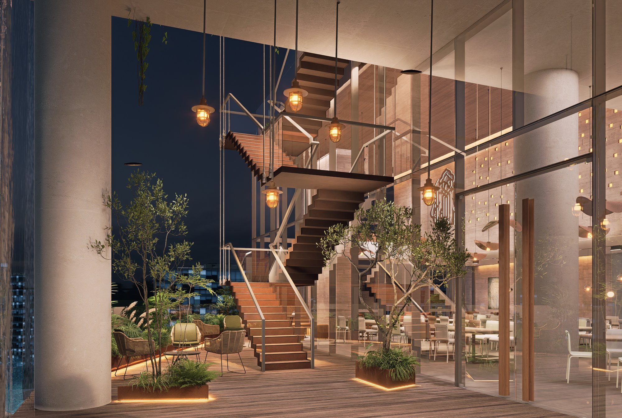 The design incorporates interconnected internal stairs and terraces, weaving together the building’s various floors into a cohesive vertical campus. These elements go beyond mere functional circulation: they create opportunities for chance encounters, informal gatherings and shared experiences, blurring the line between work, social interaction, and leisure.