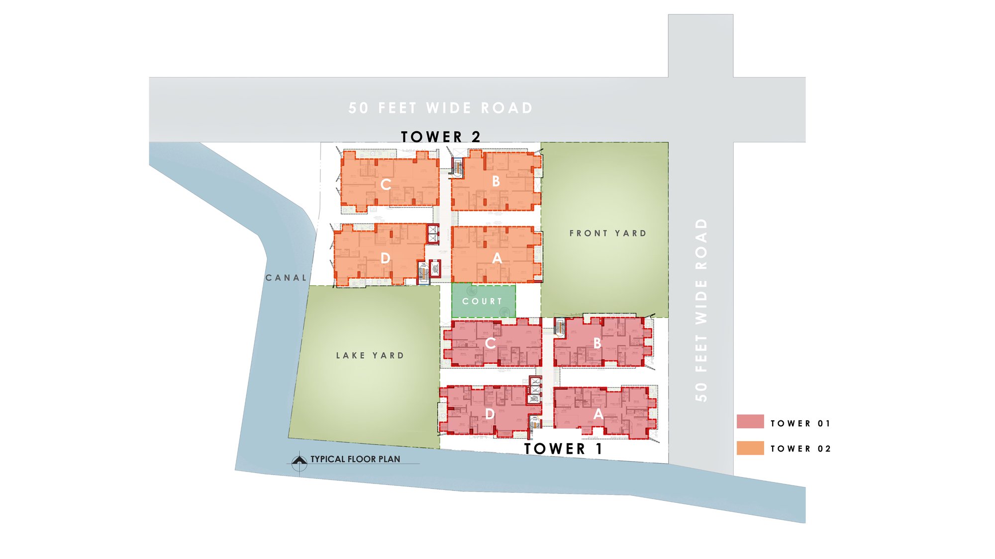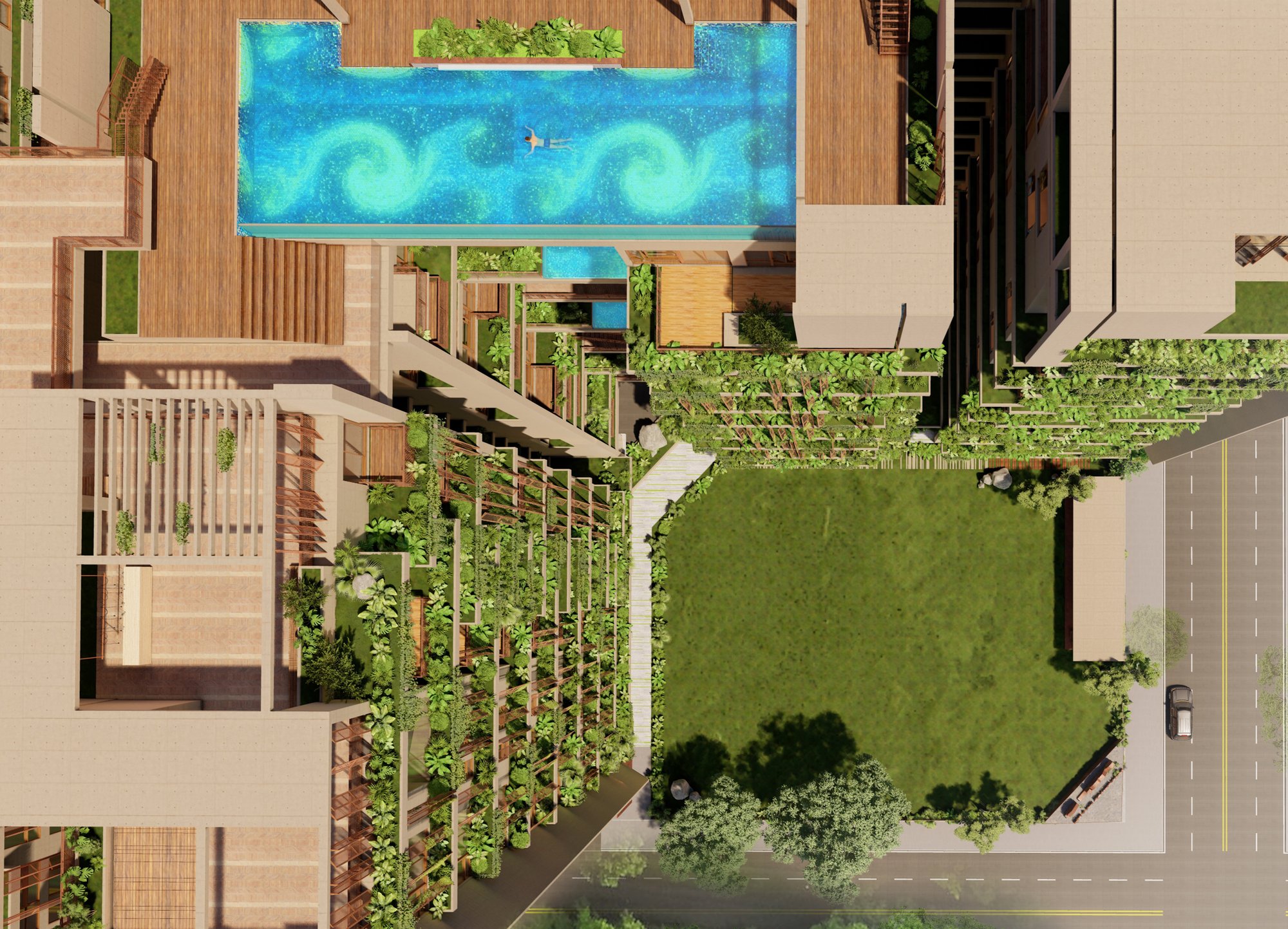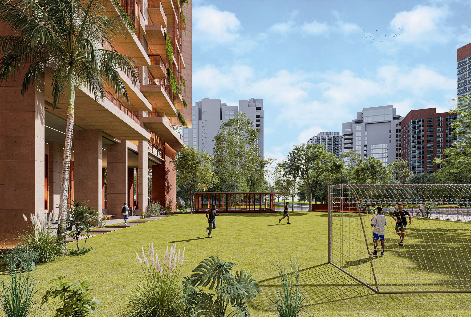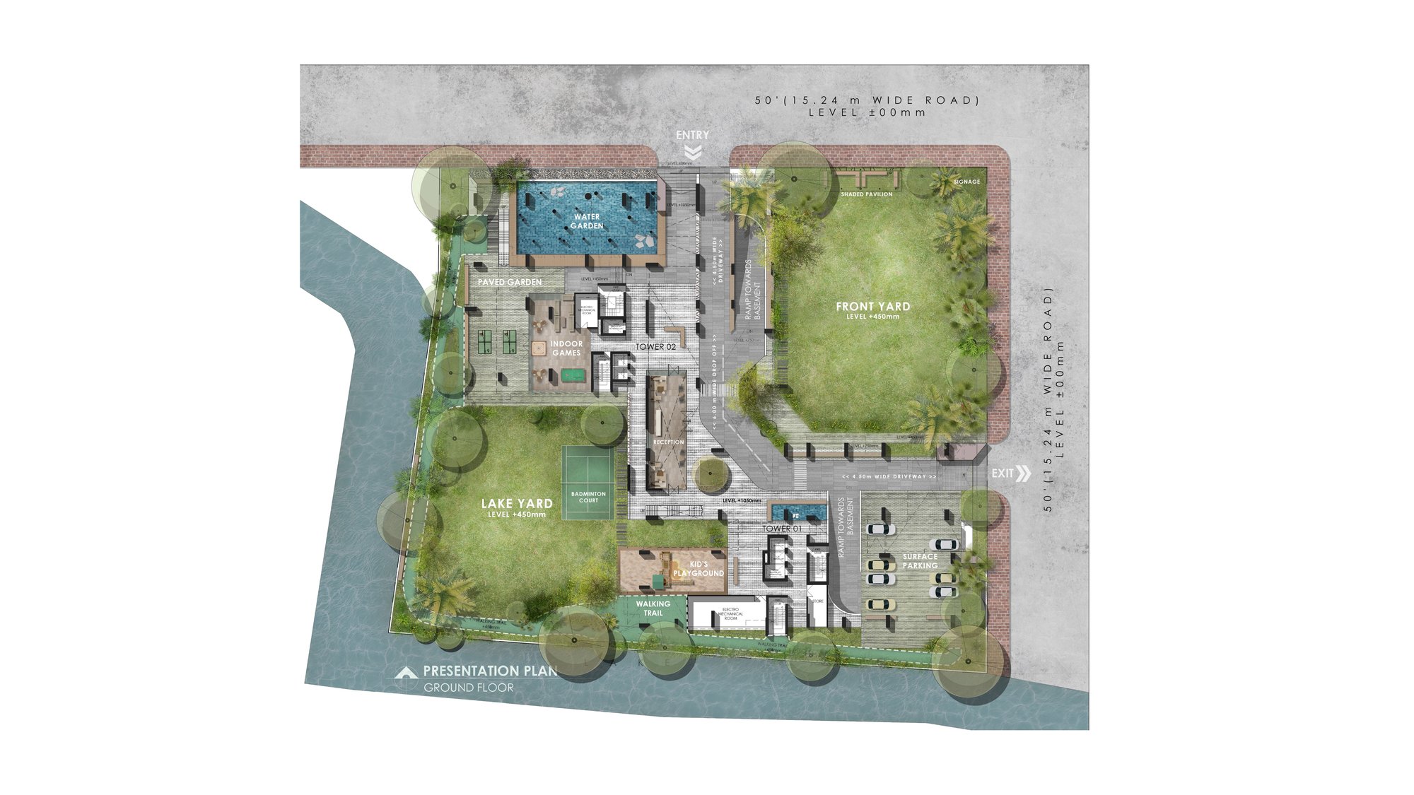 Amenity spaces are strategically distributed some near the ground and others elevated ensuring equal and simultaneous access for all residents. The sequence of internal courts, landscape corridors, and urban greens, anchored by the Lakeyard and Front Yard, creates a cohesive living environment far beyond the typical apartment experience.