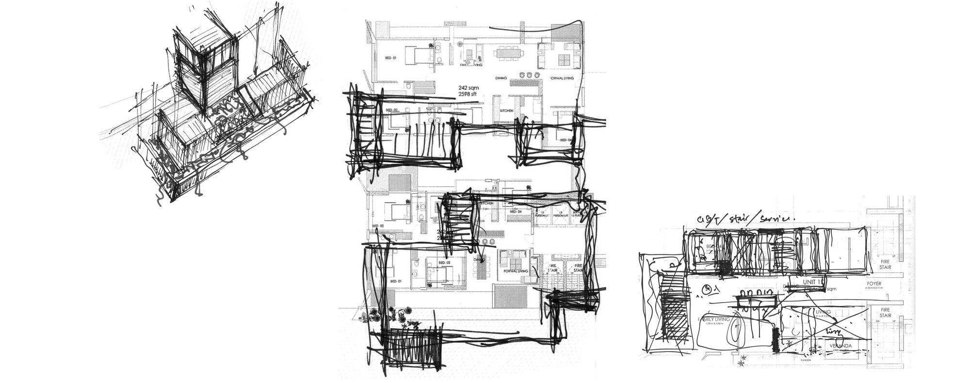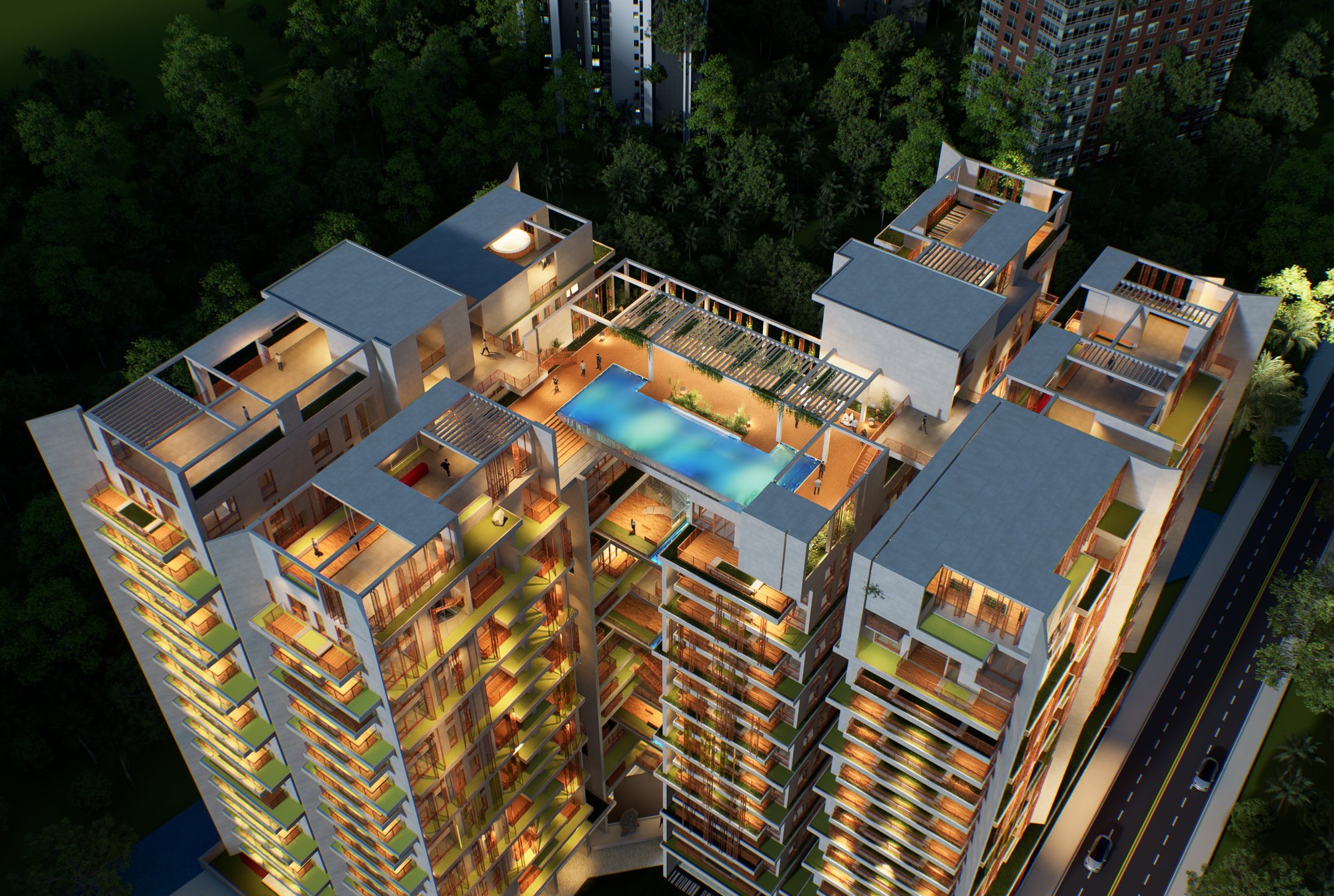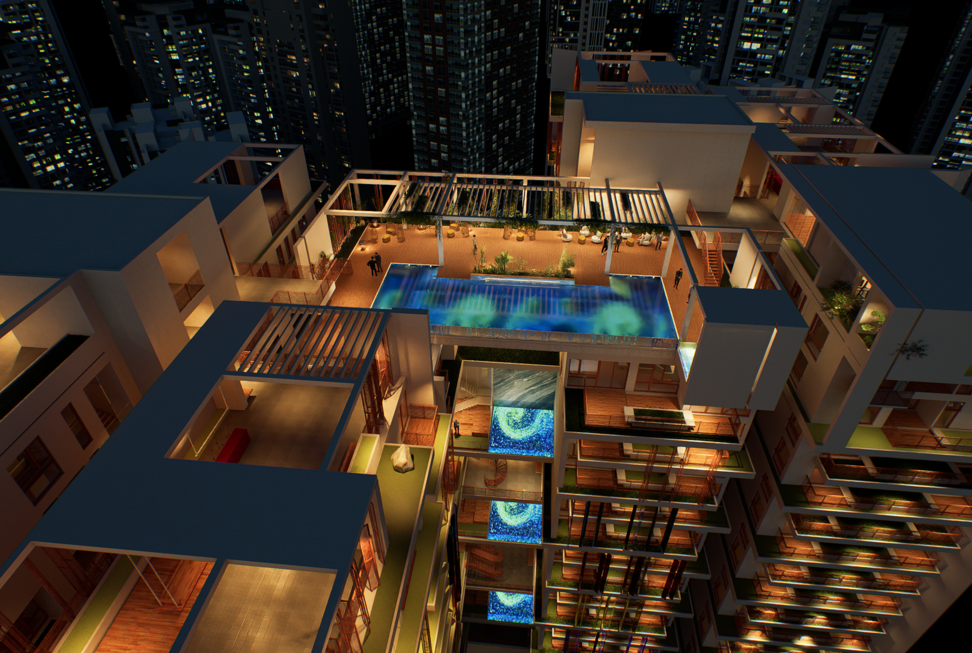The main inspiration behind the concept of the design is creating a lifestyle rather an conventional apartment. Located in a highly dense city Dhaka, people often need a home ,a place to get peace and a place to breath, and this project aims to fulfill those need. This project consisted with two green yards, which are thoughtfully placed in two corner of the building, connecting them through corridors ,landscape and bringing the ambient of the greeneries to users daily life, several internal courts are placed in multiple levels.