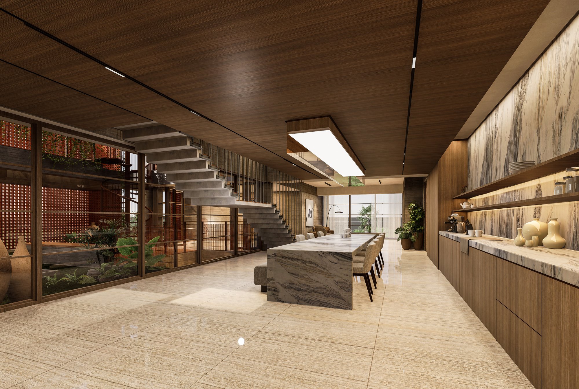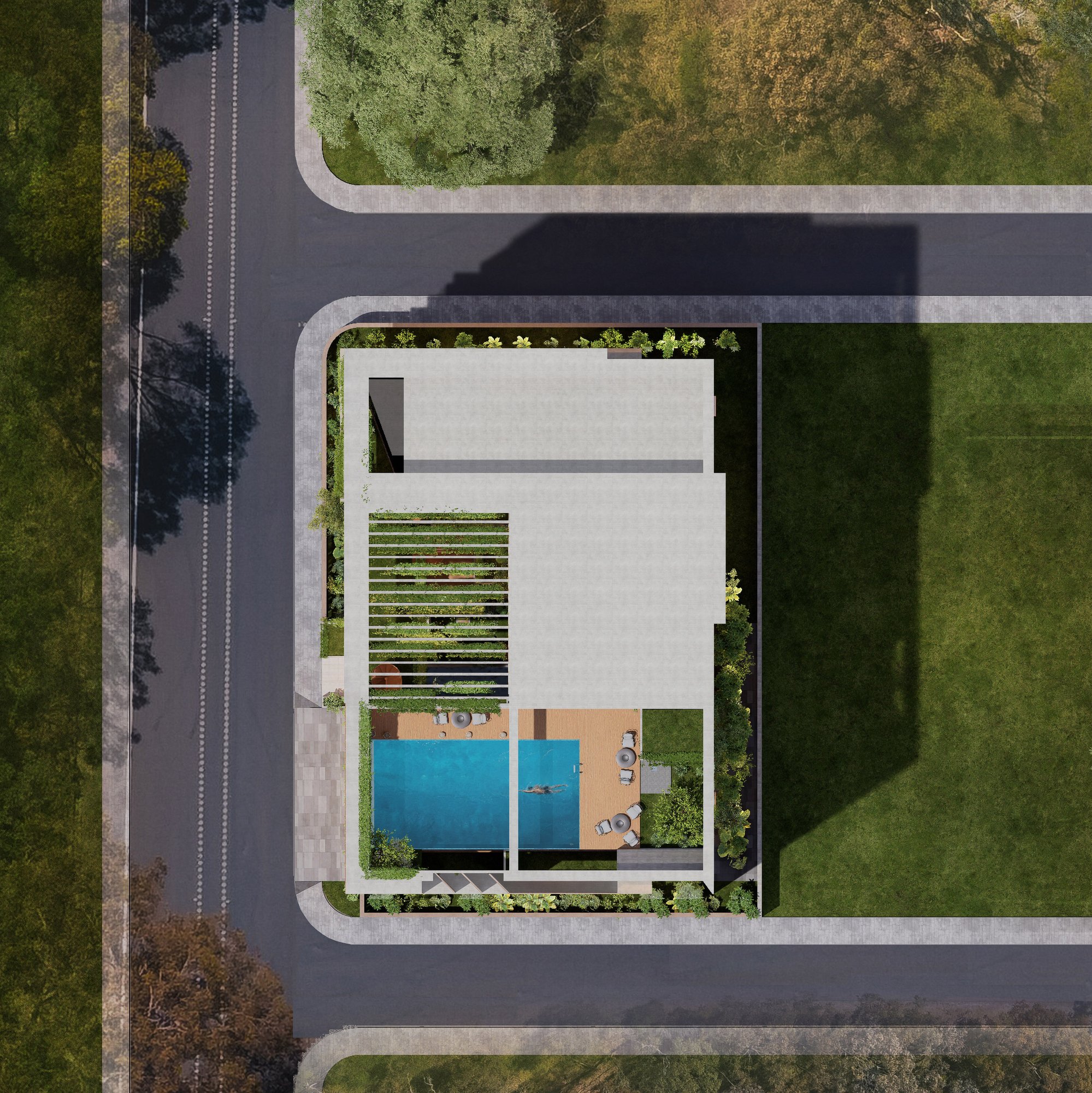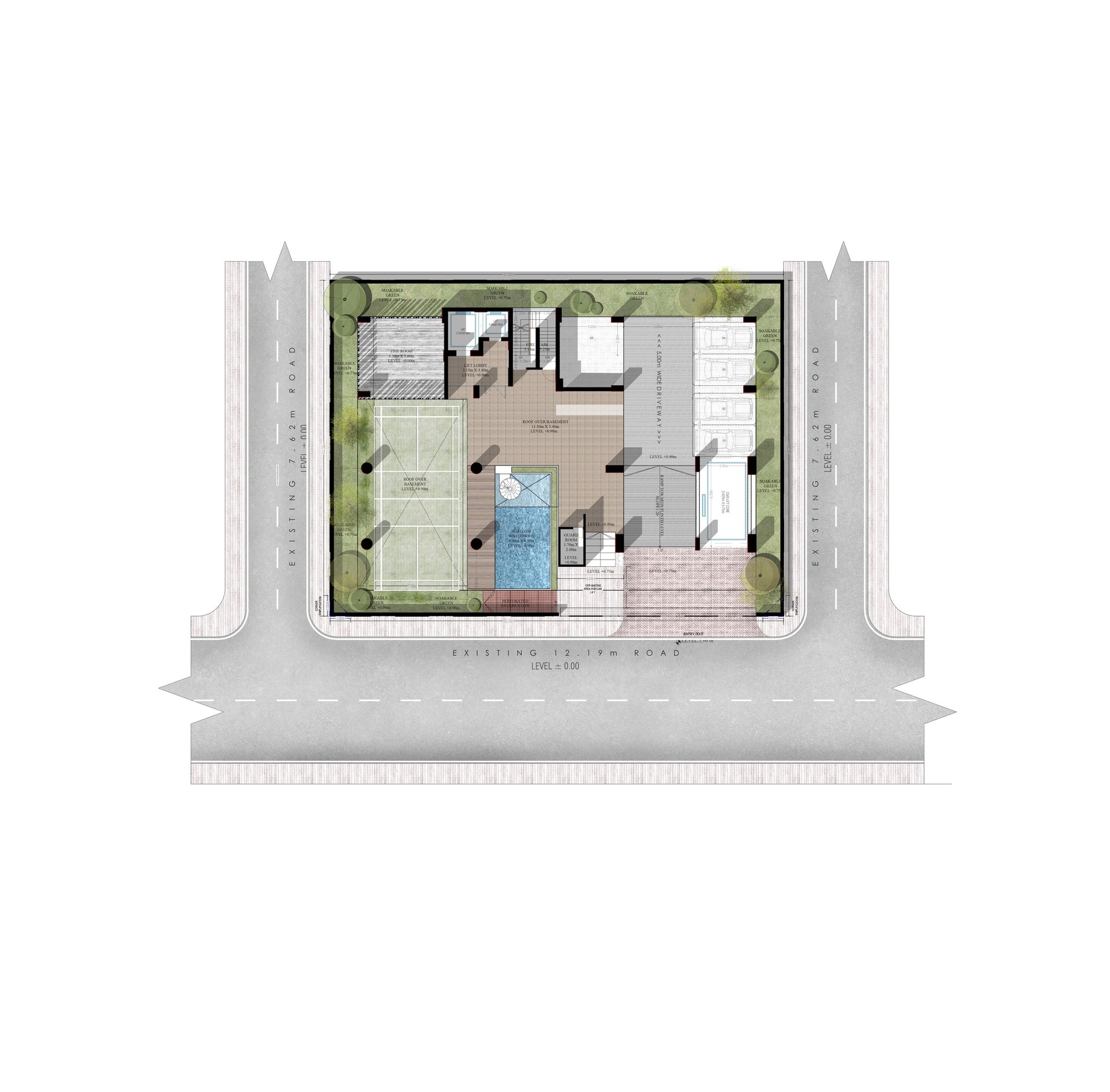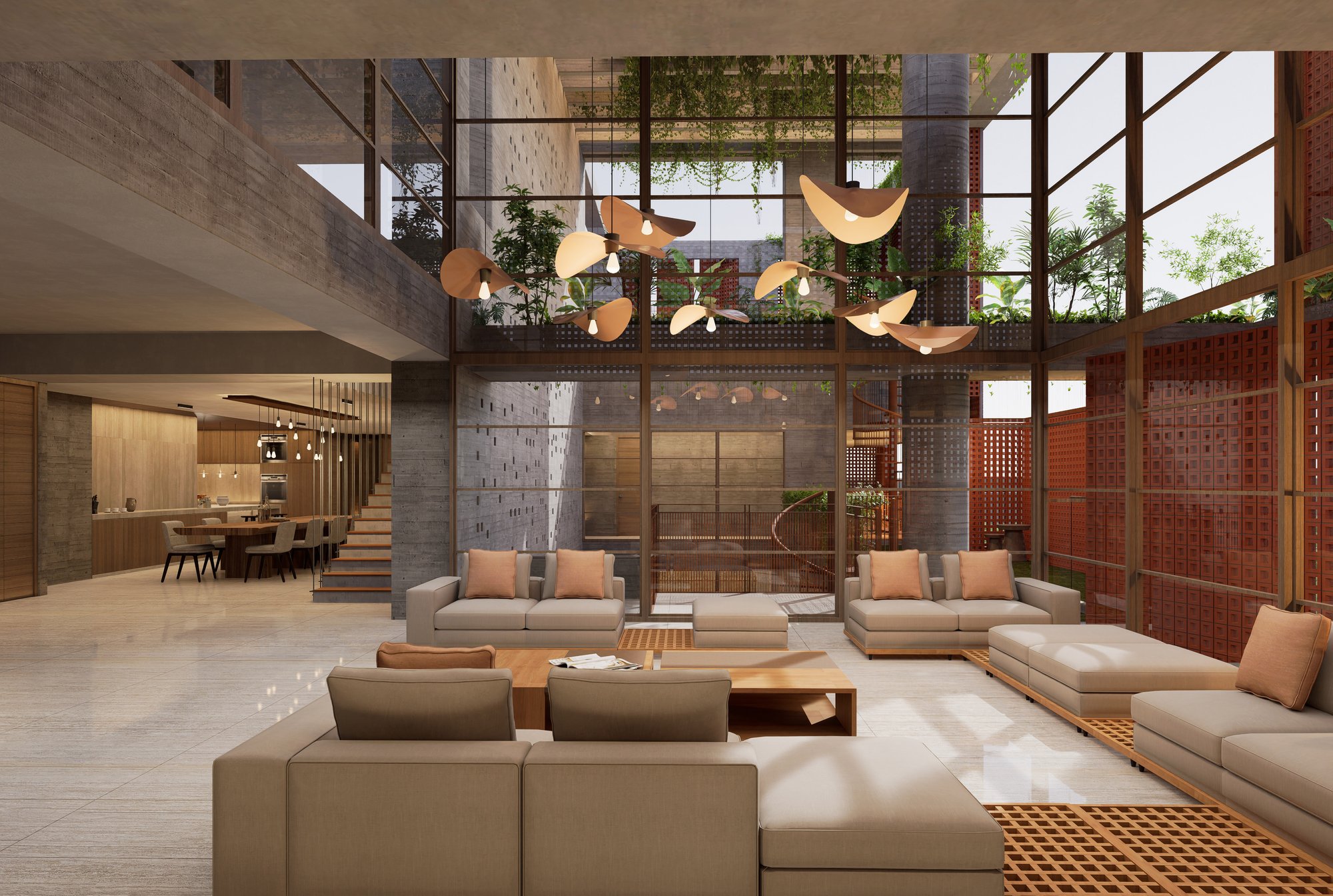 The massing is sculpted to maximize natural ventilation, encourage cross-breezes, and allow unobstructed views from the upper family levels where the owners will reside. Layered balconies, green verandas, and carefully designed cutouts soften the verticality, grounding the structure in a dialogue between built form and nature.